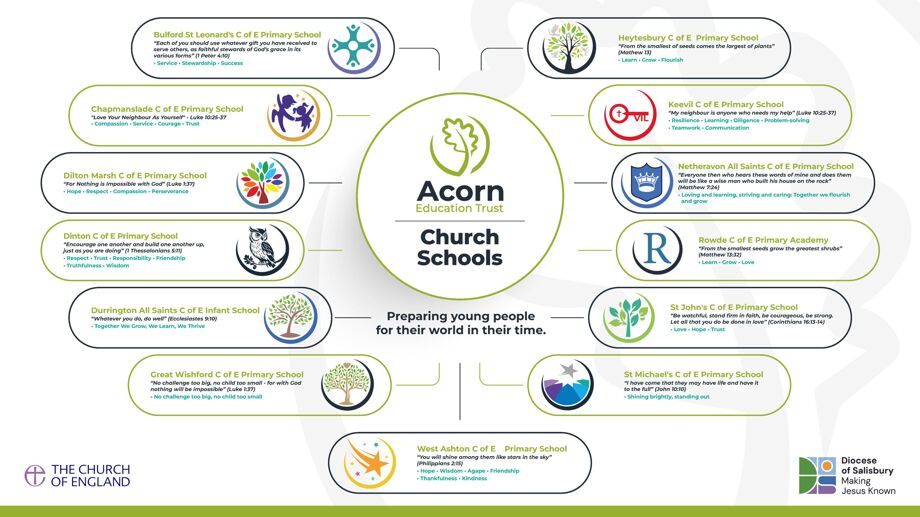 There are currently 13 Church of England (CofE) primary schools in the Acorn family. These schools all work within the Salisbury Diocese.